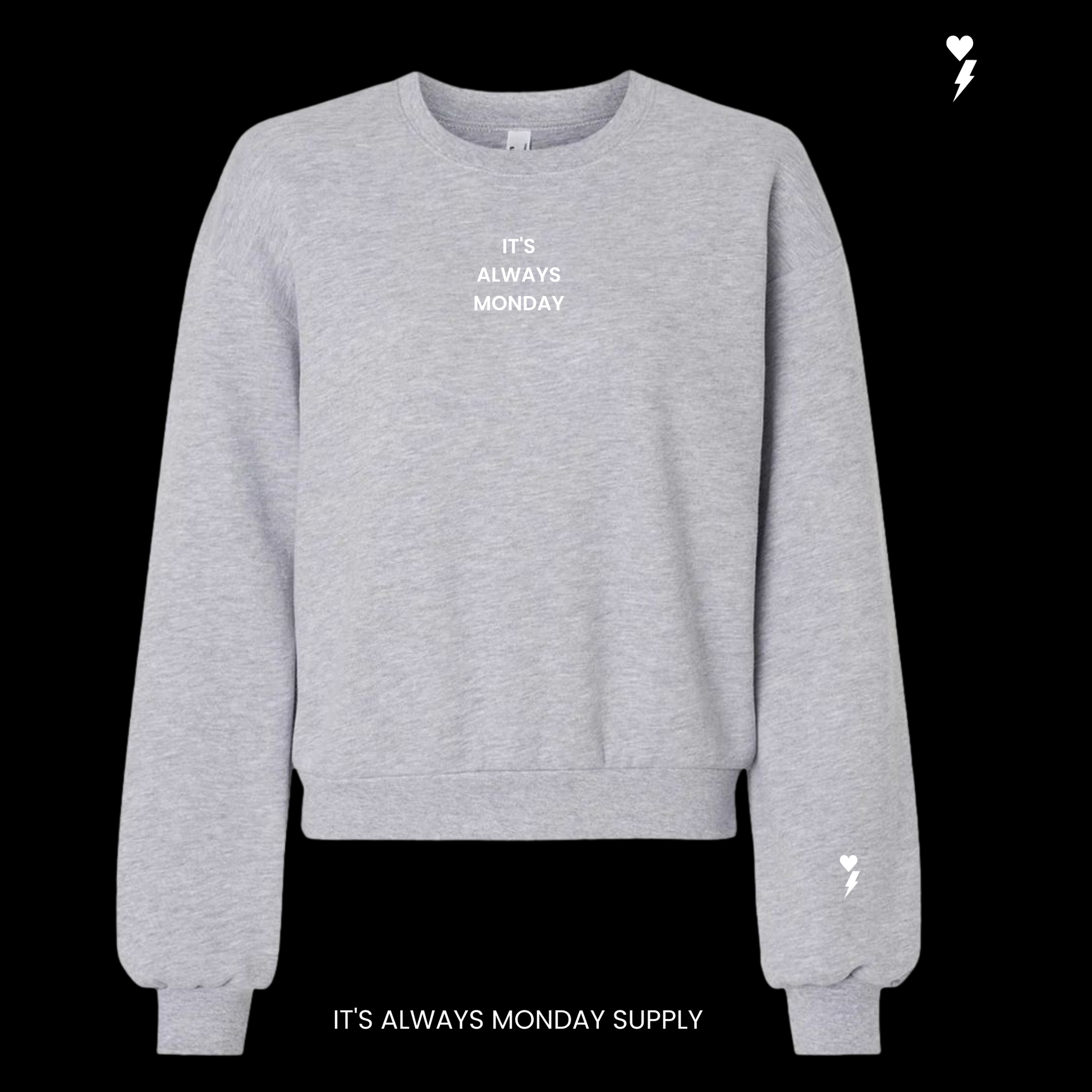 Do it. Don’t quit. Built for the season we didn’t ask for, the It’s Always Monday crewneck is your go-to fall essential. Printed on a premium American Apparel blank, it delivers that heavyweight feel with a broken-in softness Ladies actually want to wear. You’ll fall in love with this crewneck the second you pull it on—ideal for everything from tailgates to chill nights when the cold hits harder than expected.