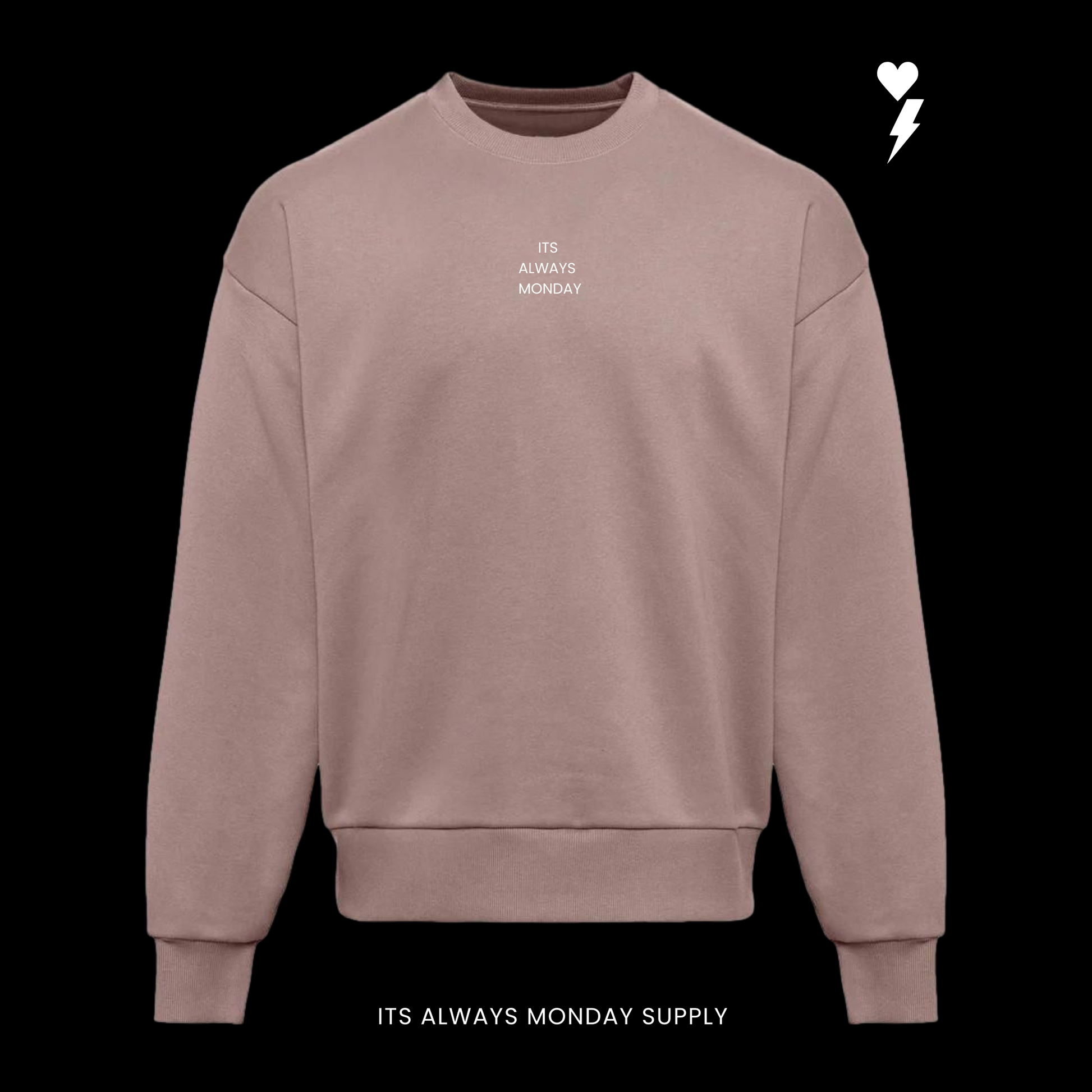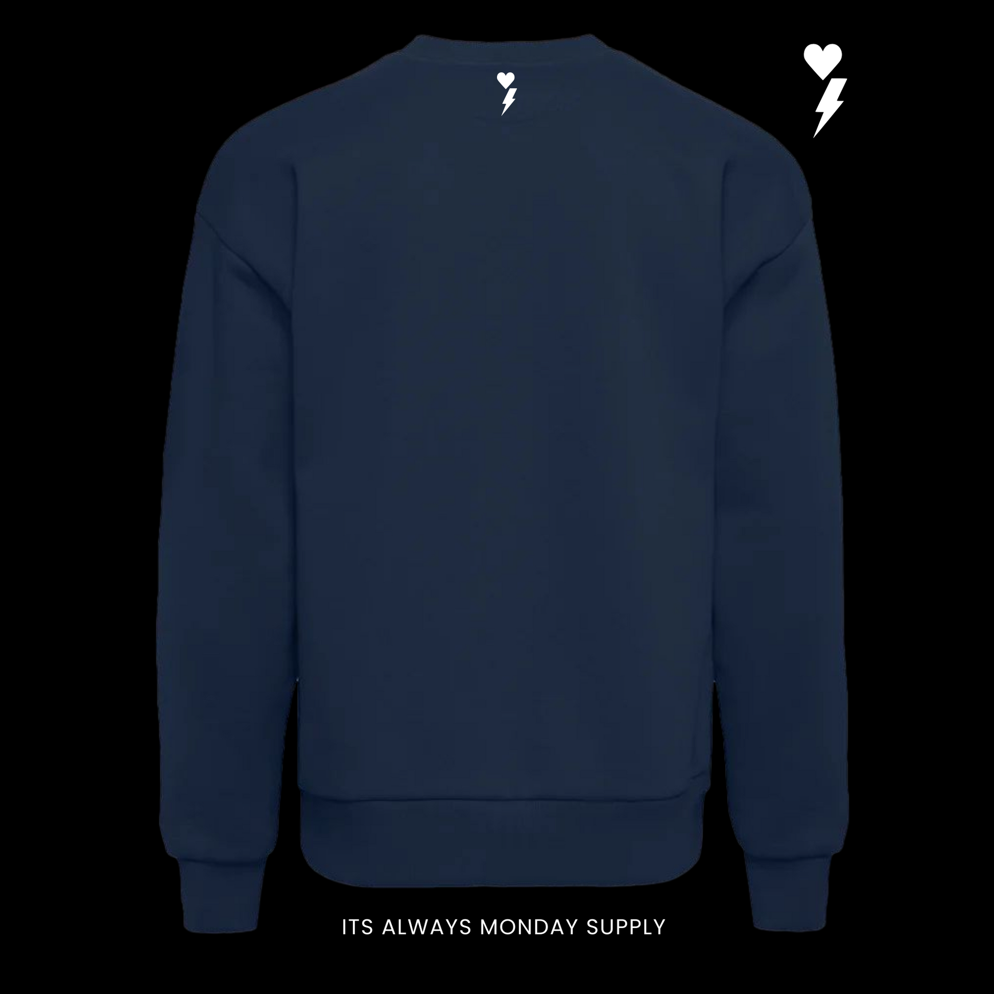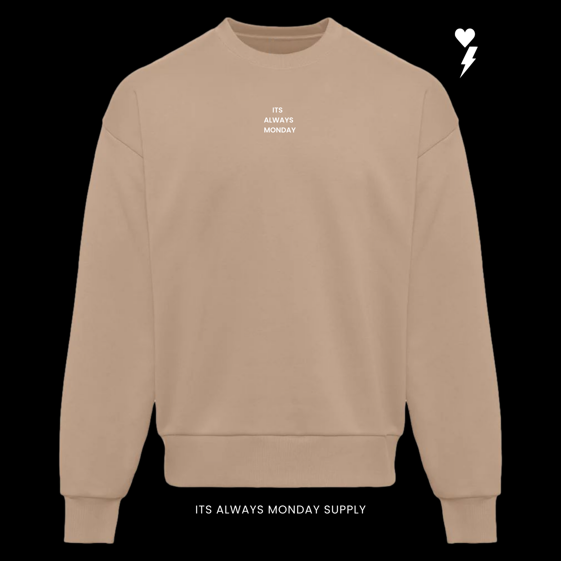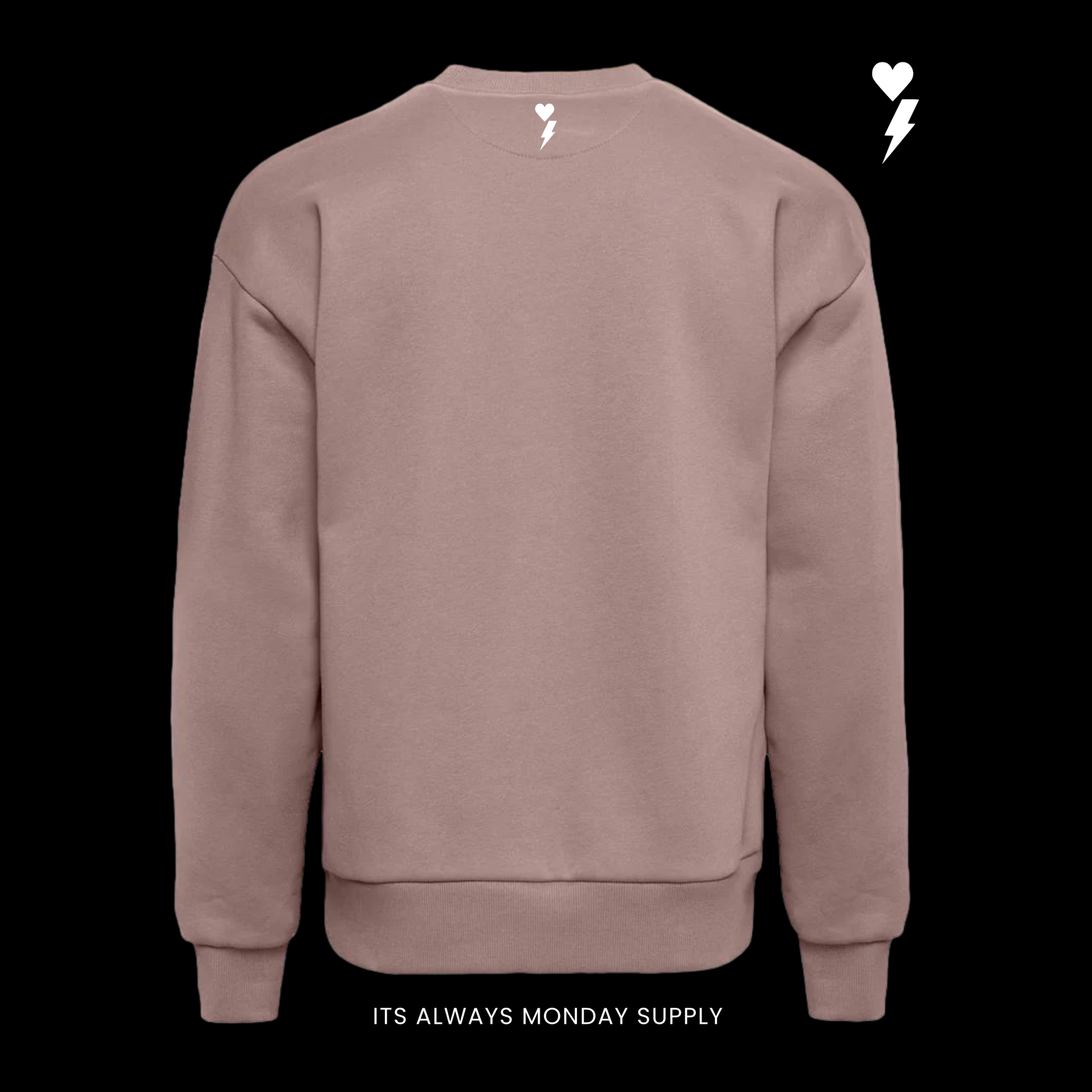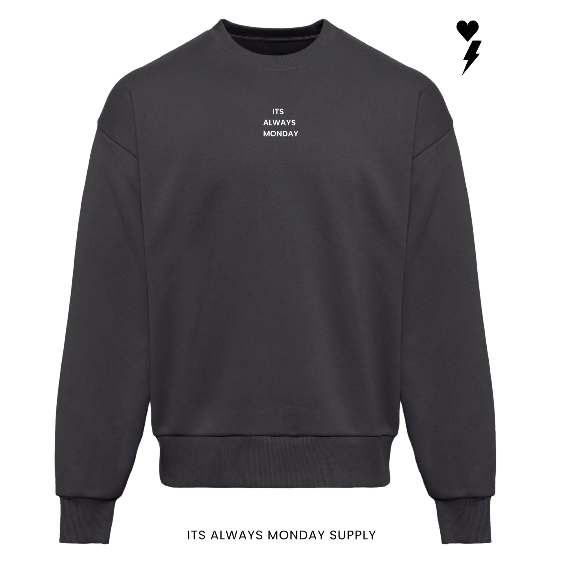 Crafted from premium heavyweight cotton, this crew brings that structured feel that only gets better with wear. On the front, It’s Always Monday stands bold and unapologetic — a reminder that every day is a chance to start again. On the back, the OG Logo — the Yin and Yang of heart and lightning — represents the balance between love and hustle, calm and chaos.